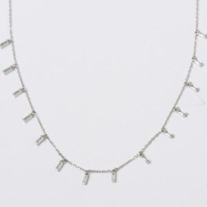 Colar tiffany baguetes cristais cravaçao inglesa pend mini elos – 40+3cm