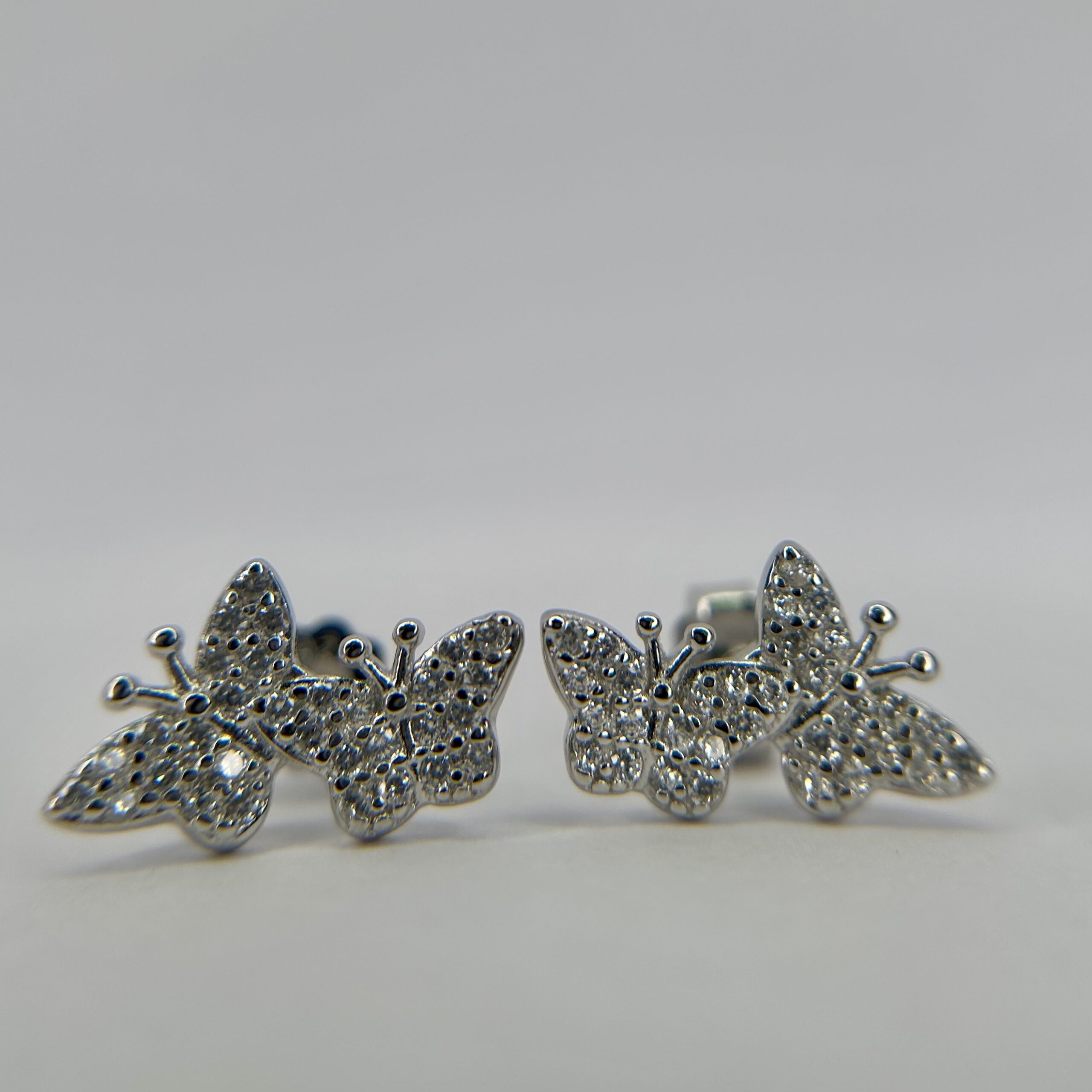 Brinco 2borboletas cravejadas com antenas lisas – 8×13.5mm