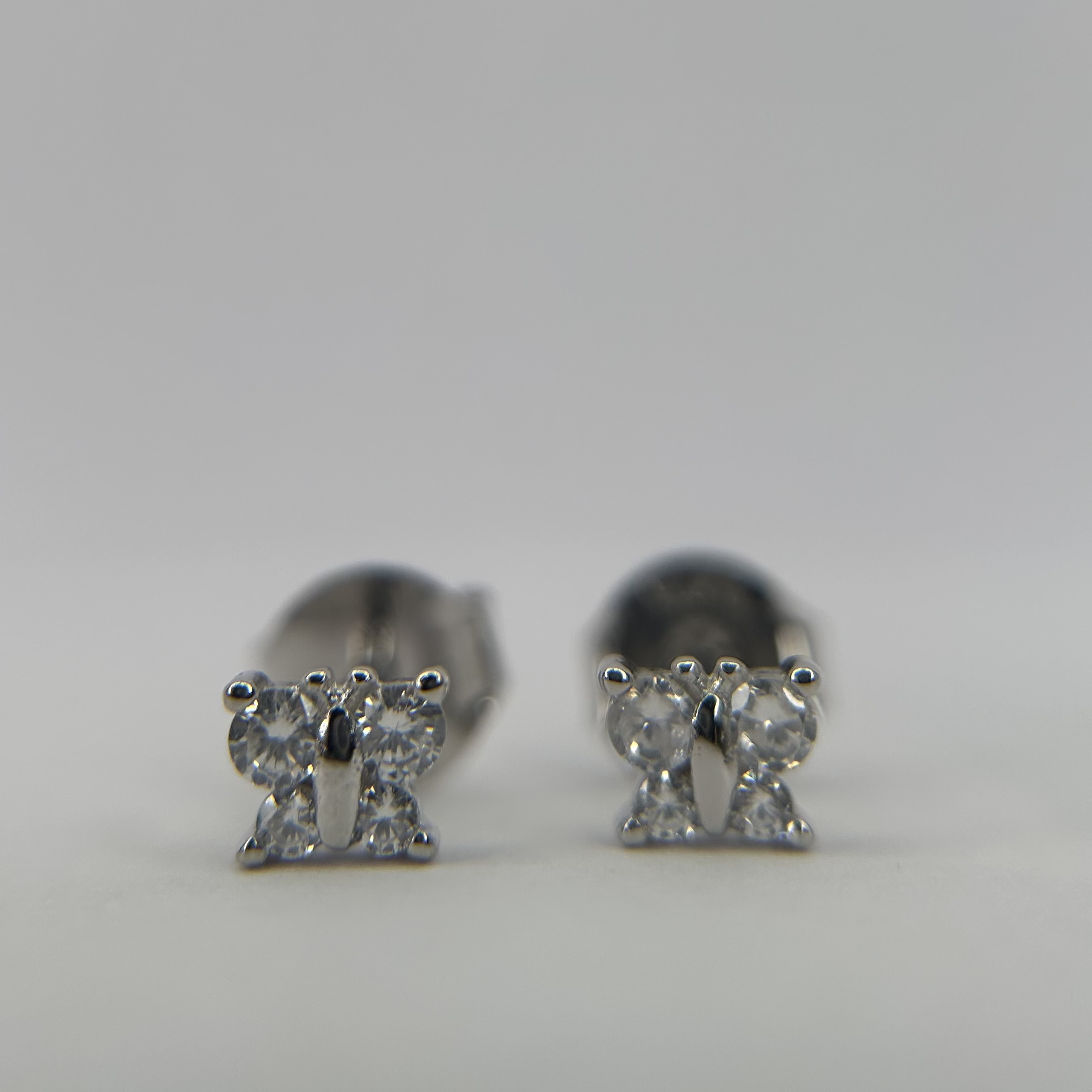 Brinco borboleta mini 4zirconias redondas, 4garras – 4mm