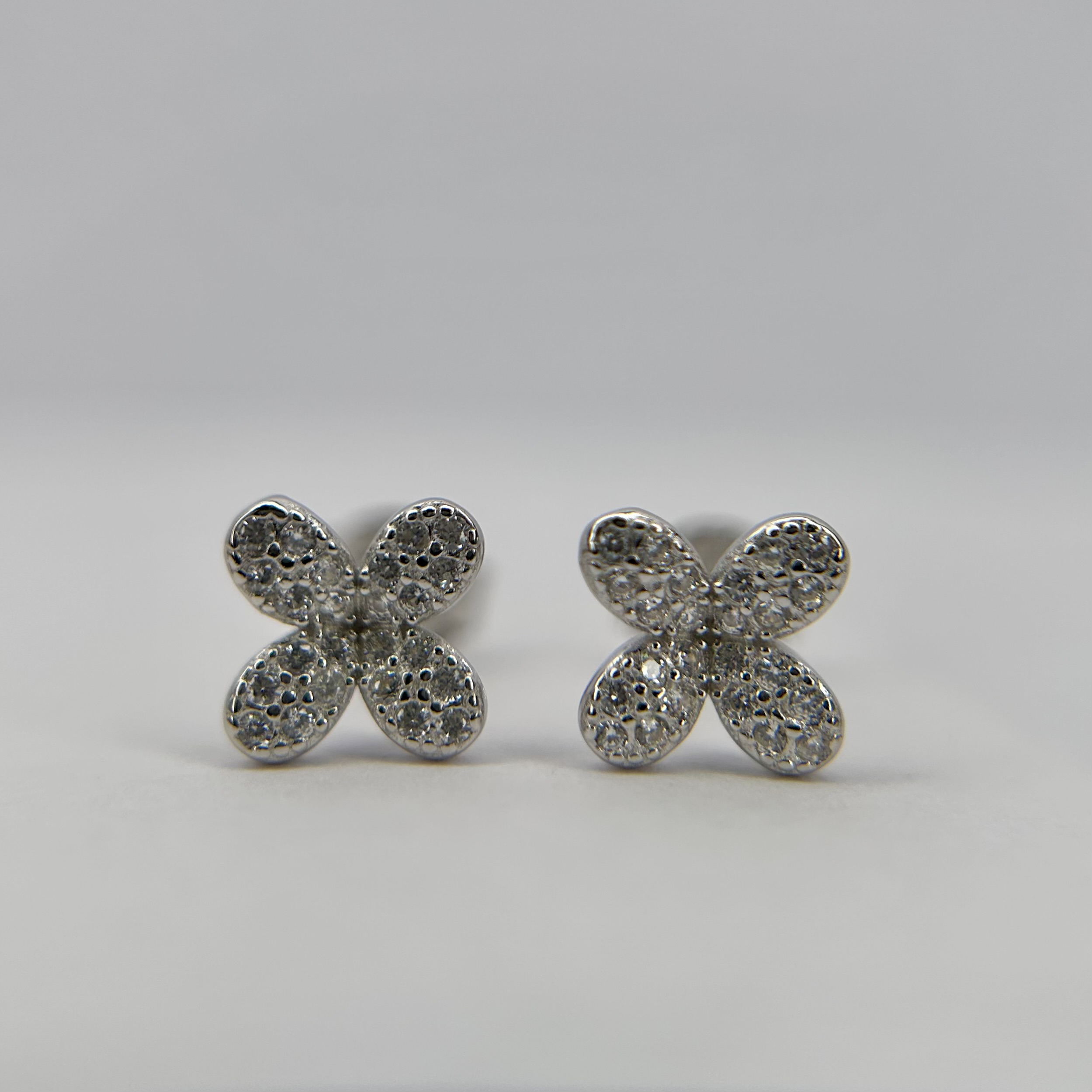 Brinco flor 4petalas arredondadas e espaçadas cravaçao pave – 6.5mm