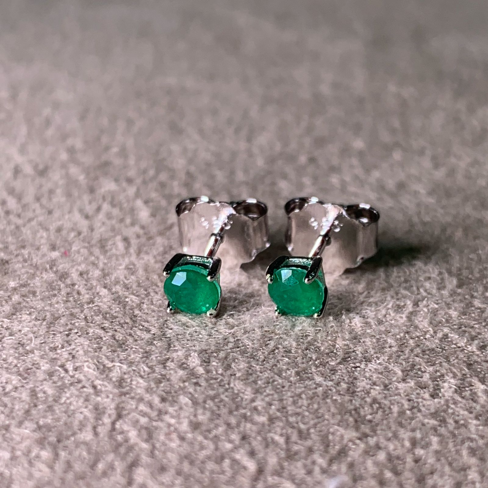 Brinco solitario cor esmeralda fusion 4mm 4garras – caixa alta vazada