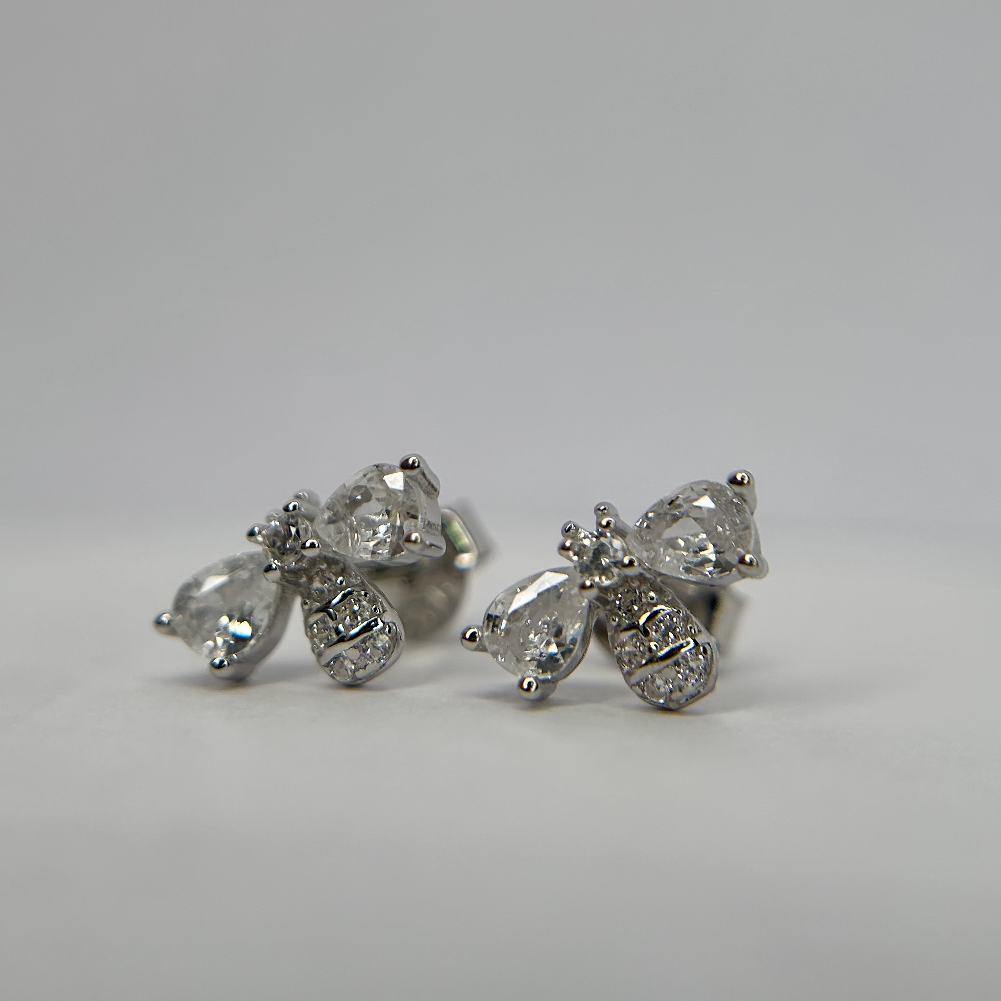 Brinco vespa com corpo cravejado com antenas lisa em prata e asas gota – 6.7×10.3mm