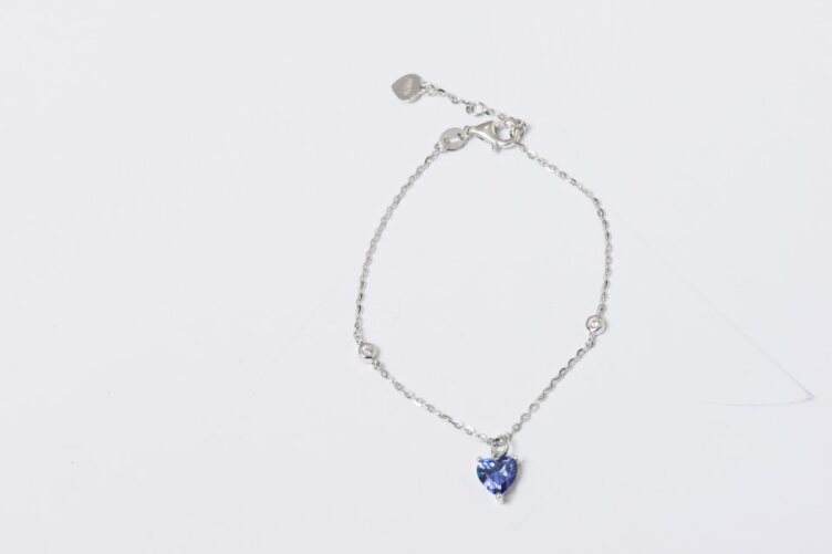 Pulseira coraçao tanzanita entre 2zirconias crav inglesa – mini elos 18cm